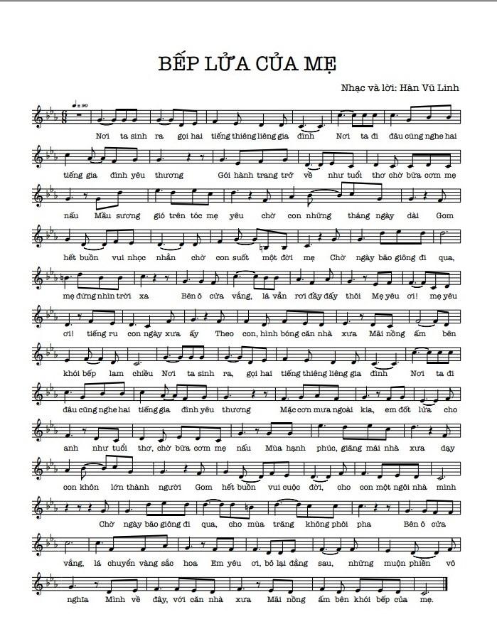 | Bếp lửa của mẹ Sáng tác: Hàn Vũ Linh, 2021 Phối khí: Yên Lam Các a sĩ thể hiện: Lê Anh Dũng, Phạm Hồng Mơ Công bố: Hàn Vũ Linh Album 4 Cài nắng vào tóc em 2022; Phát sóng trên VOV 2022 |