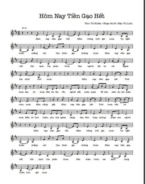 Link bài hát Hôm nay tiền gao hết, Hàn Vũ Linh sáng tác, phỏng thơ Vũ Khiêu, ca sĩ Lê Thu Hà thể hiện